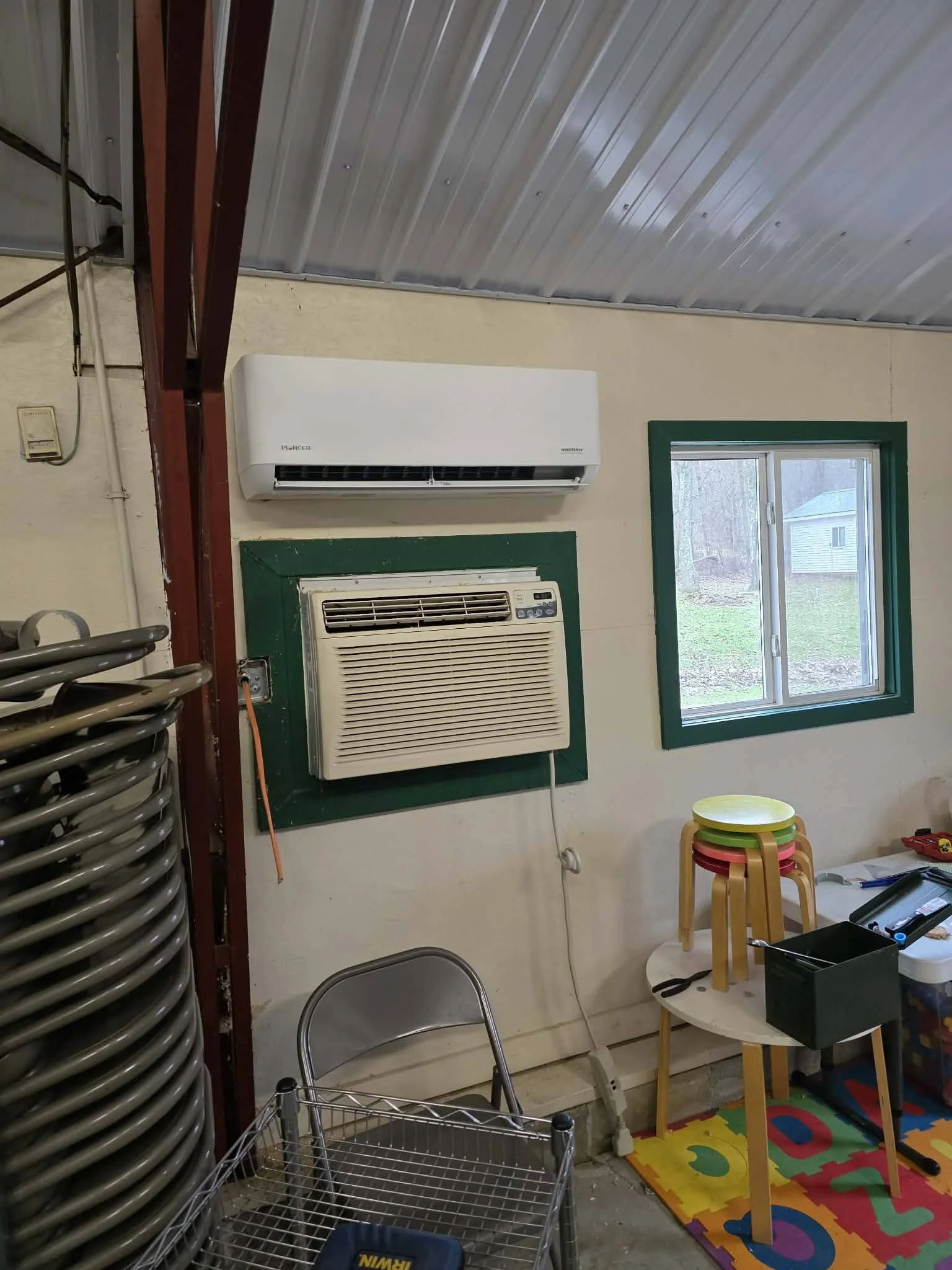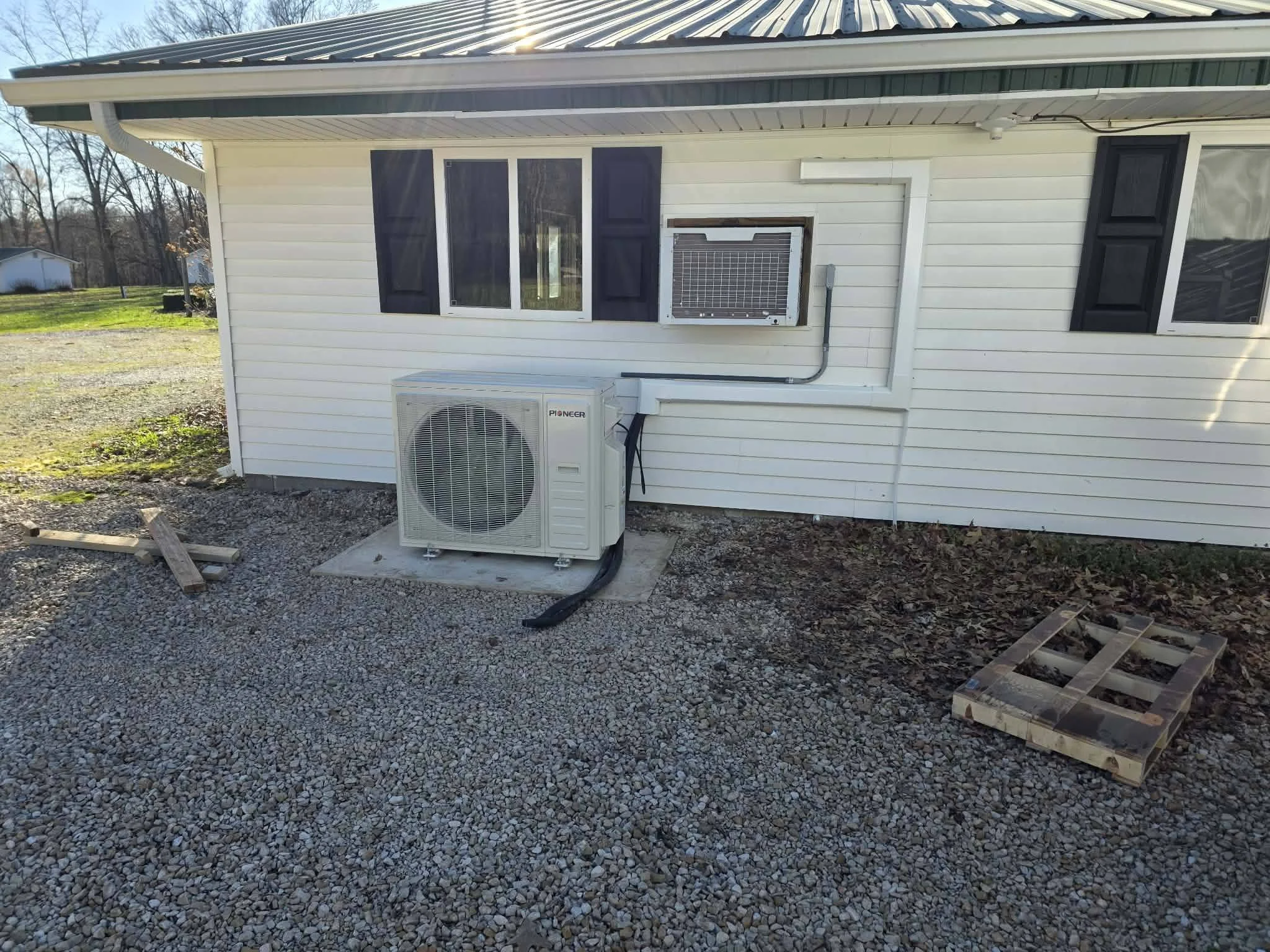 "Bart Borders and I are in the process of installing the new mini split HVAC systems in the messhall at Woodland. We have 2 outdoor units that will feed a total of 8 indoor units. If you are not familiar with these systems they are more efficient and less noise than the current window A/C units we have been using. Two of the window units are dead and we have one in the rec hall that is also dead. The plan is to use one of the good ones from the messhall to replace the one in the rec hall. With the upgrade in the messhall we won't have to shut the A/C off to hear someone speaking. They also do heat so we can get rid of the big gas furnaces hanging from the ceiling, and allow us to utilize the messhall in cooler temperatures. The cost of these new units is about $11,000 not including a few cosmetic and electrical items.
